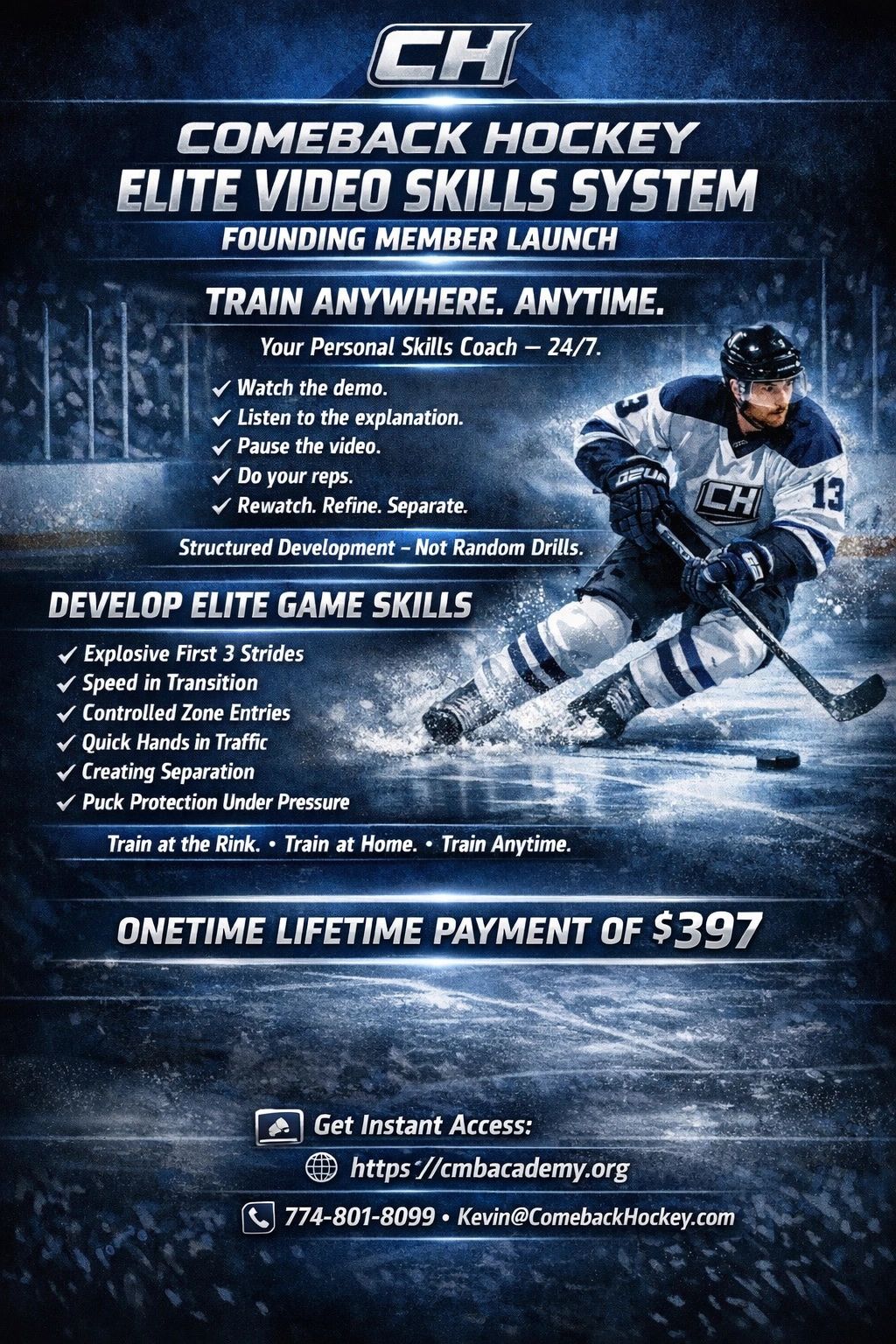 Welcome to the Comeback Hockey Digital Skills & Drills System — a complete, structured training experience designed to help players develop elite habits, explosive speed, quick hands, and confidence with the puck.